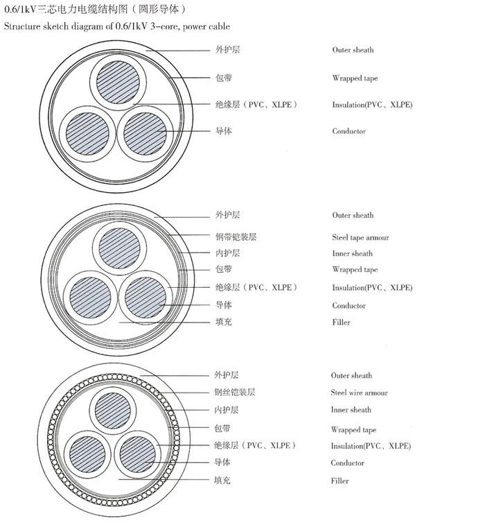 阻燃及耐火電力電纜結構尺寸